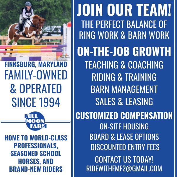 We are seeking a committed full-time employee to join our team. We are committed to an inclusive environment, welcoming all horse lovers regardless of race, color, religion, sex, gender, national origin, age, disability.
