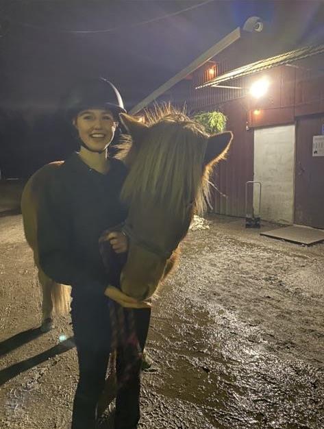 Started riding 2011 on ponies and then 2019 on icelandic horses. Started equineschool 2021 where I rode english on "normal" horses. Started working at a ridingschool 2022. Was in Ireland 2023 for 3 weeks working at a stable that had young ponys that were in showjumping. In 2024 was in South Africa 3 weeks for work experience doing all kinds of tasks, riding included.