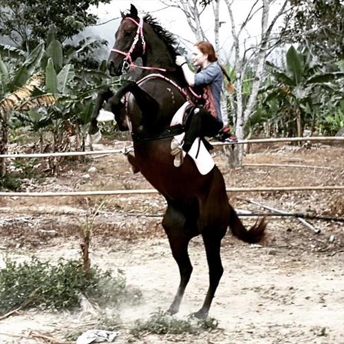 started to ride horses at 7 years old started competition at 11 didn't stop until 18 training horses show jumping up to 130-140cm, dressage vaulting managed a yard for 4 month after owner's accident .