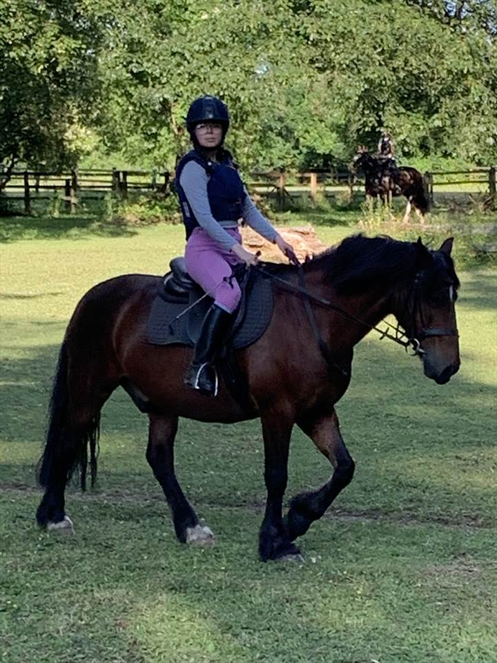 I am a competent rider, walk, trot, canter and some jumping. In school and outside.