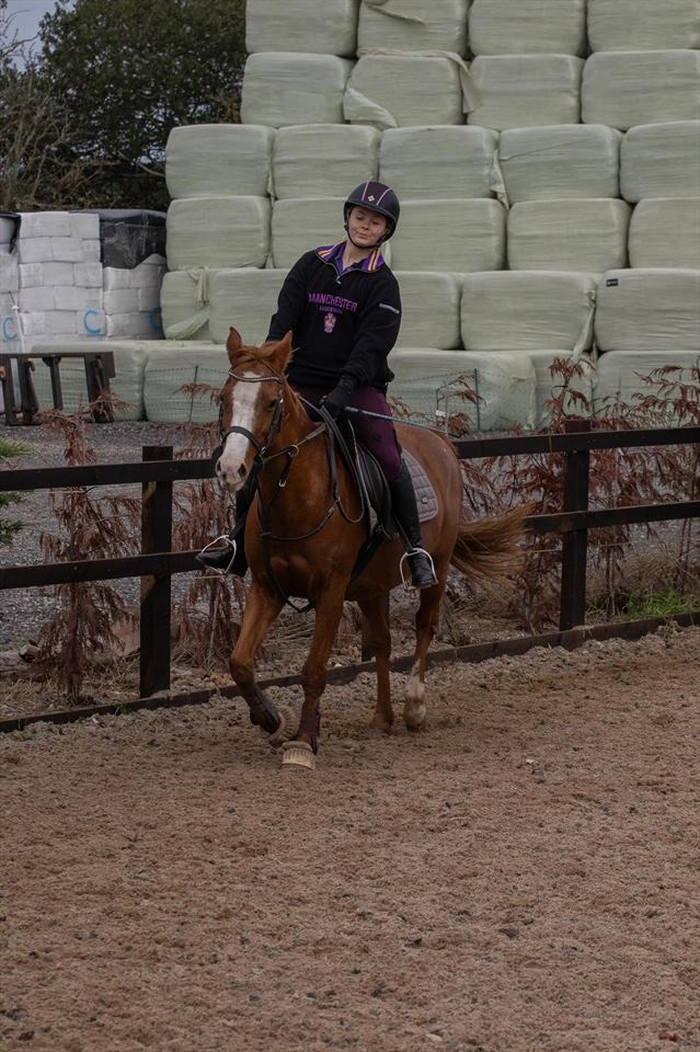 On the university B team where we ride a different horse every week. Specialise in dressage and showjumping.