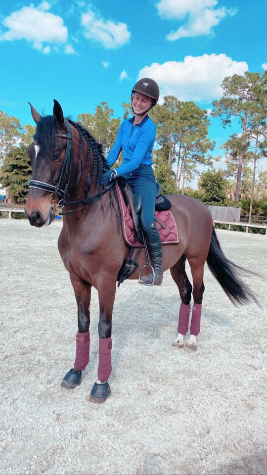 10+ years, eventing, show jumping up to 1.20, dressage up to PSG, young horse training, working student for top eventers, dressage stables in US and Germany. Dual citizenship in US and Germany.