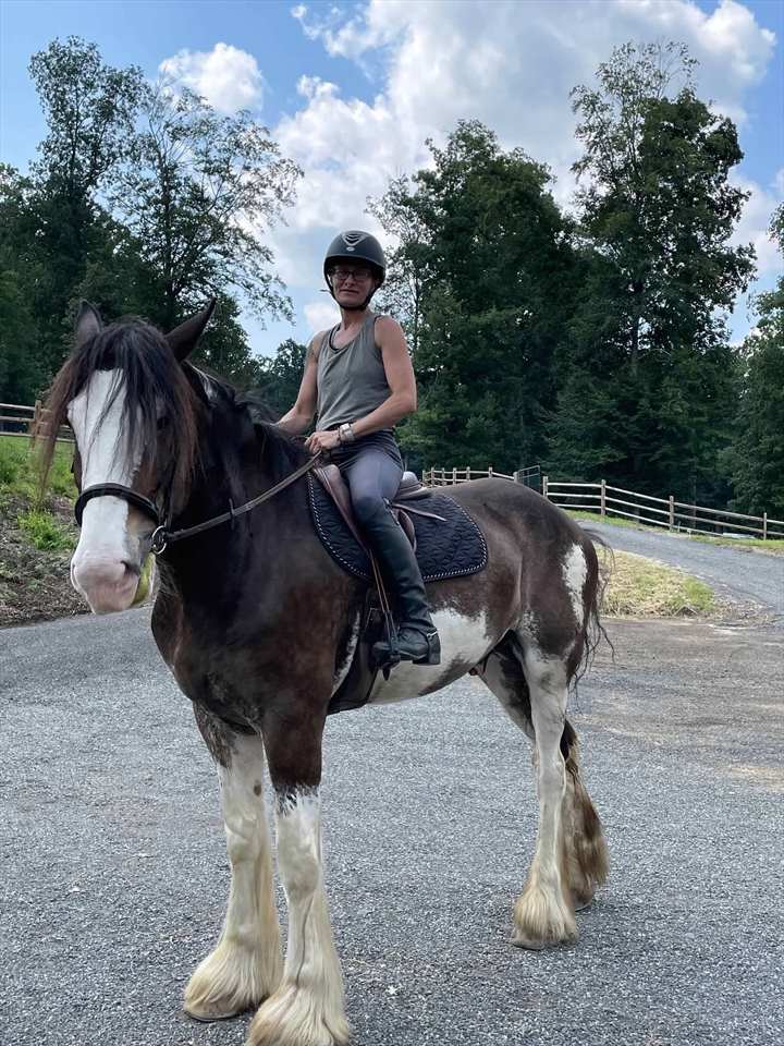 I have been riding since I was 3. My family owns a logging business that still uses horses and a small lesson barn. I started jumped as a kid, eventing 14-35 and moved to jumpers. I started giving intermediate/begginer lessons at 18 age. Schooling since I was 10. I always had to ride the lesson ponies that needed an attitude adjustment. That’s still my MO. Jumping, grooming, Barn manager, Exercise rider, Ground driving. Lunging, lessons. Clipping,