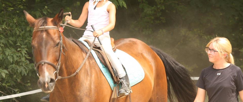 I have a lot of experience riding small ponies. As a more experienced rider who can still comfortably fit on one, I usually exercise the ponies to keep them fit between their lessons with younger kids. I have been riding in an English saddle since I started. I have done a few IHSA flat shows and when home I jump once a week.