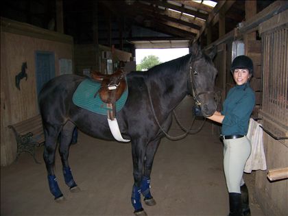 Experienced in equitation and hunter disciplines. Beginning jumping 2'6''. Experience in exercise riding intended for lessons, shows and sale. Experience as working student and in barn management.