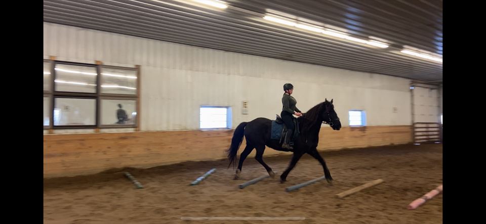 I own a 5 year old Friesian/Morgan, Blaze. We are training in dressage and jumping.