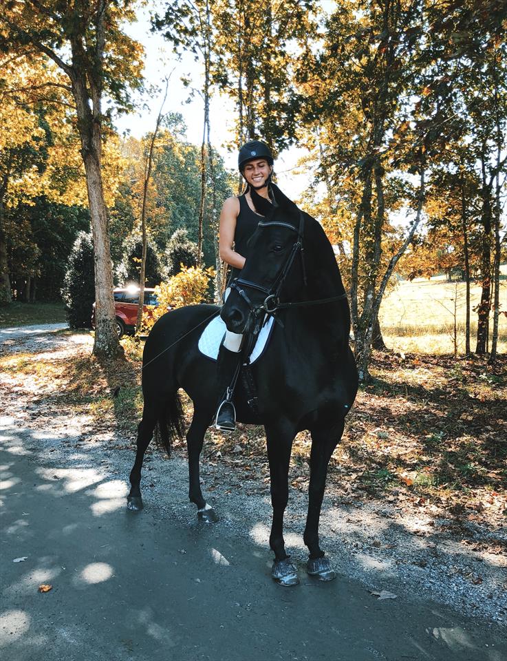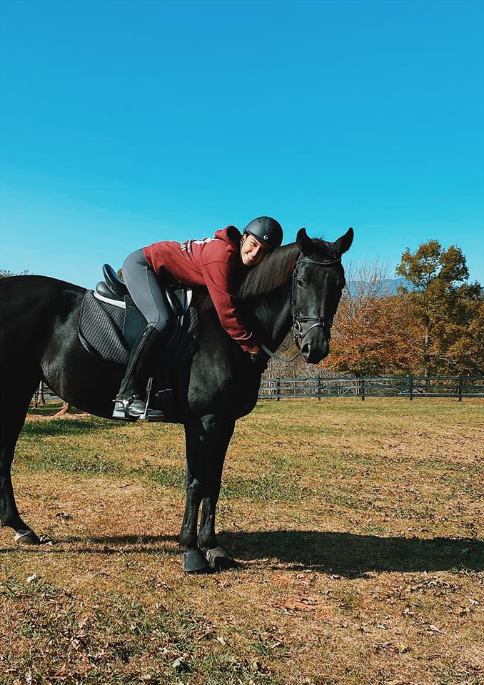 I am comfortable riding both English and western, though I prefer English. I’ve taken dressage and jumping lessons on and off my whole life and worked as a full time exercise rider at one point. My favorite way to spend time in the saddle is on the trail.