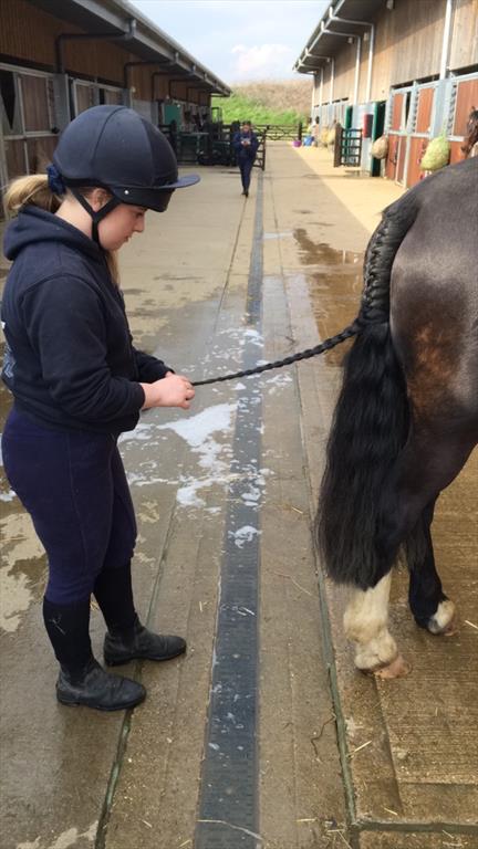 riding (show jumping) grooming Hunting plaiting clipping turn out feeding general yard duties mucking out